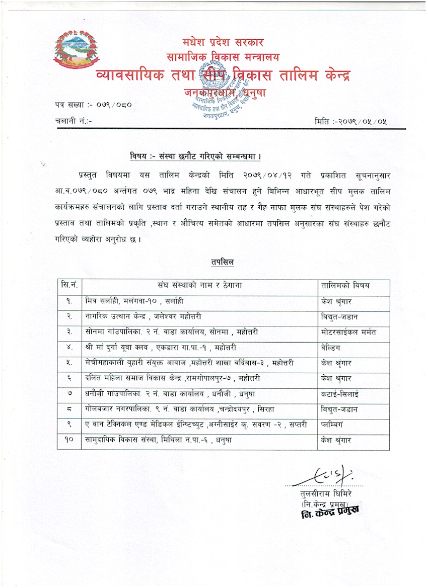 व्यावसायिक तथा सिप विकास तालीम केन्द्र,धनुषा